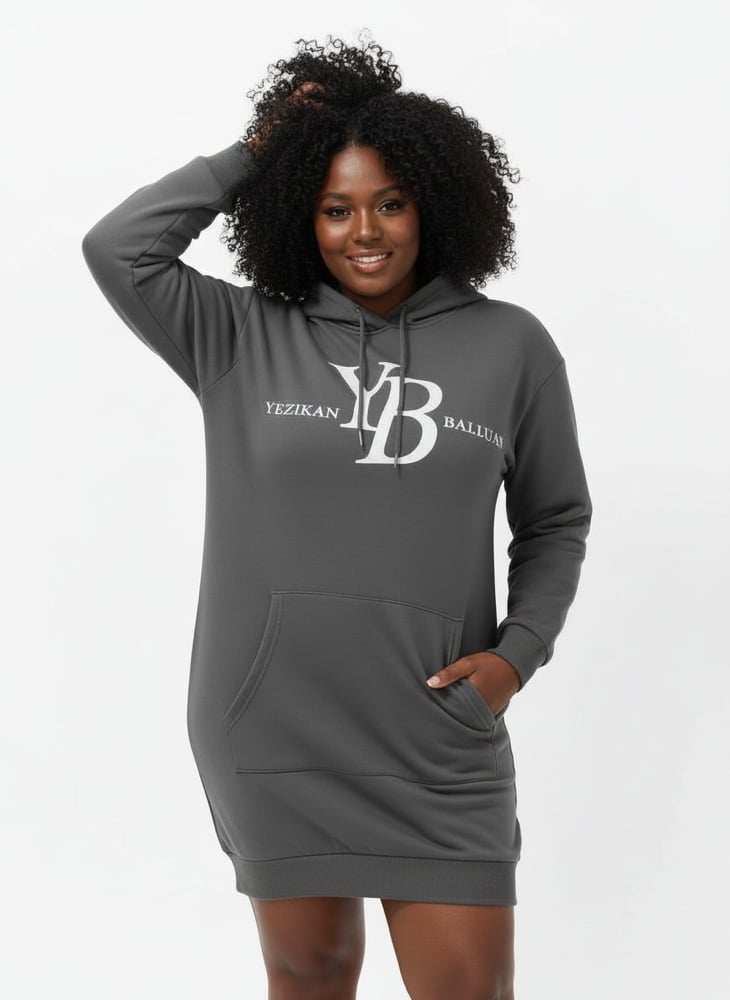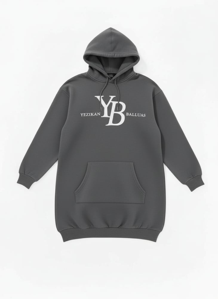 YB Charcoal Long Loose Fit Hoodie Dress
