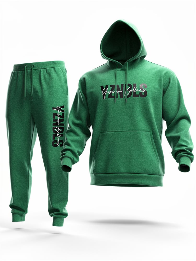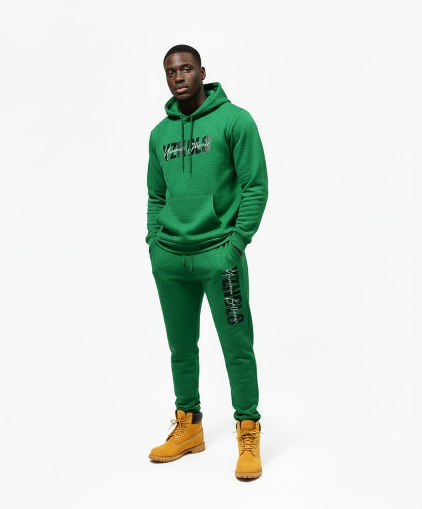 YB Kelly Green Abbreviated Print Pullover Hoodie Jogger Suit