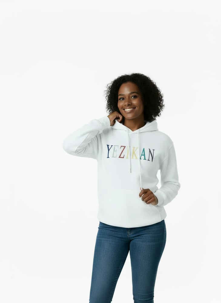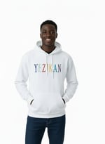 YB Marbled Embroidered Logo Heavy Blend White Pullover Hoodie