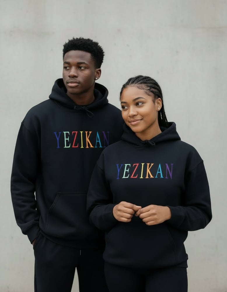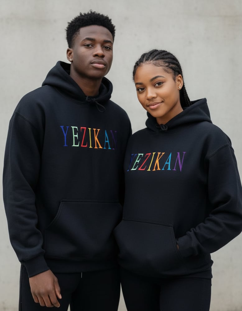 Yezikan Black Marbled Embroidered Logo Heavy Blend Pullover Hoodie