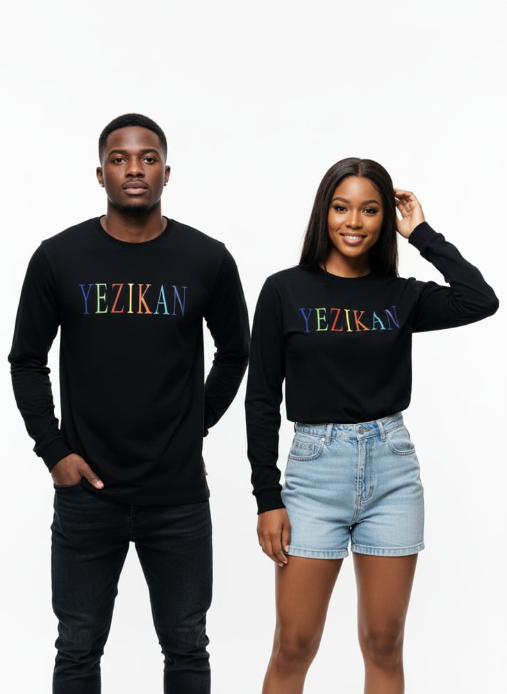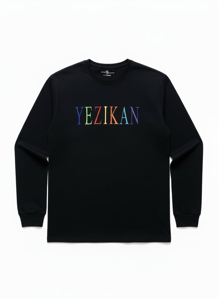 Yezikan Marbled Embroidered Logo Black Long Sleeve T-Shirt